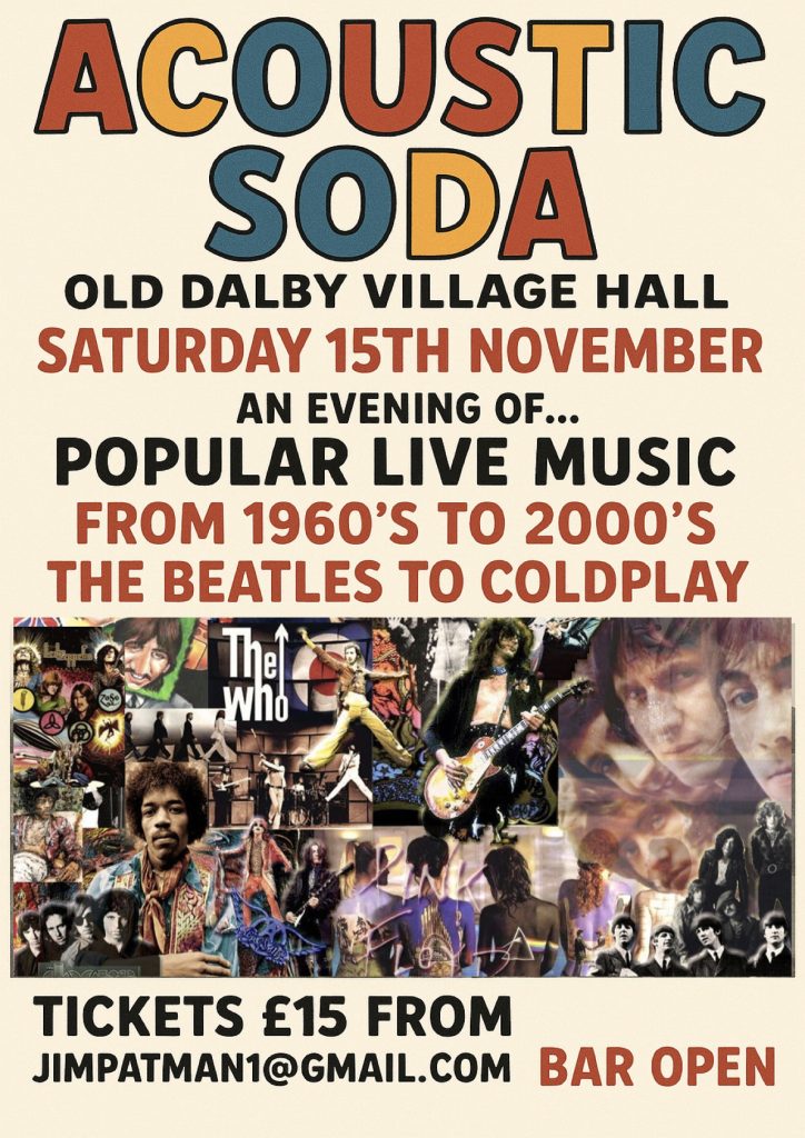 Fridays, 9.30 – 11.30. OUTREACH POST OFFICE – OLD DALBY VILLAGE HALL is now on FRIDAY!! 9.30-11.30 am. Contact Will – 07855 494331