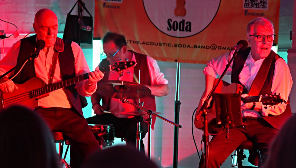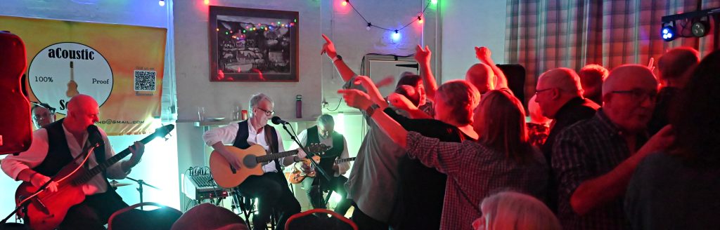 The Village Hall engaged the brilliant band” aCoustic Soda” in November 2025. The four-piece band played two 45-minute sets of music from the 60s to the naughties. Their brilliant delivery had everyone foot tapping within a few songs, and by the end of the night, most of the audience had ventured onto the dance floor. Everyone was joining in and singing out. Members of the vh committee had prepared and cooked multiple portions of chilli con carne (or chilli sans carne) and, during an interval, this was served with bread and tachos to an appreciative crowd. The event was a sell-out out so, if you missed this one, look out for a repeat next year. Here are a few photos; there are more on the village hall Facebook page and also some video HERE